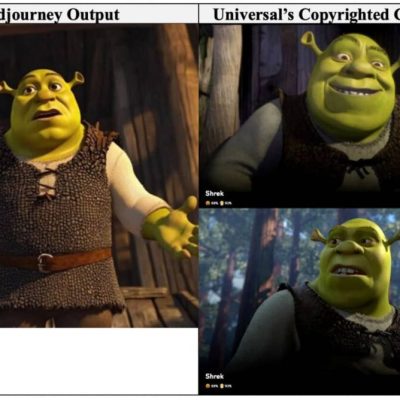 شرکتهای دیزنی و یونیورسال از میدجرنی (Midjourney) بهعلت تشکیل تصاویر هوش مصنوعی از شخصیتهایی همانند شرک، دارث ویدر (از سری جنگ ستارگان) و باز لایتر (فضانورد انیمیشنهای داستان اسباببازیها) شکایت کردند. این نخستین جنگ حقوقی بزرگ شرکتهای هالیوود علیه یک ابزار تشکیل محتوای هوش مصنوعی محسوب میشود.