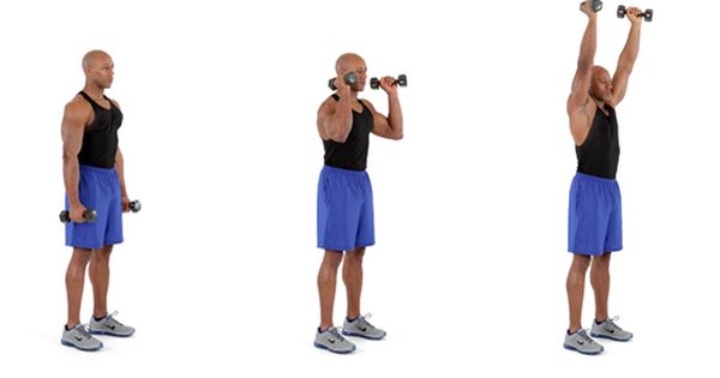 این حرکت ترکیبی برای افزایش اندازه و قوت شانهها سودمند است. با انجام این حرکت بهصورت ایستاده عضلات شکمی را به کار میگیرید که جهت بهبود حالت بدن و ارامش شما میشود.
