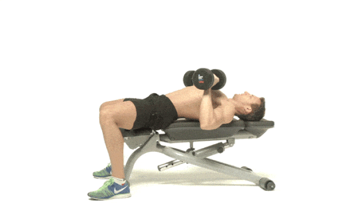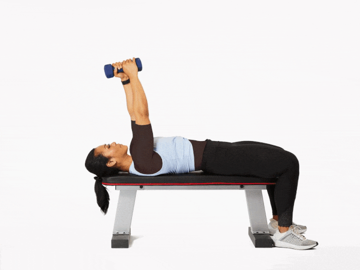 روی نیمکت تخت دراز بکشید. با دو دست دمبل را بالای بدن نگه دارید. در حالی که بازوها را خمیده نگه داشتهاید، در حرکتی قوسی، دمبل را پشتسرتان ببرید و سپس بهآرامی به حالت اولیه برگردید. هنگامی دمبل را پشتسرتان میبرید، برای ثابتکردن بدن باید عضلات سرینی و مرکزی را منقبض کنید.